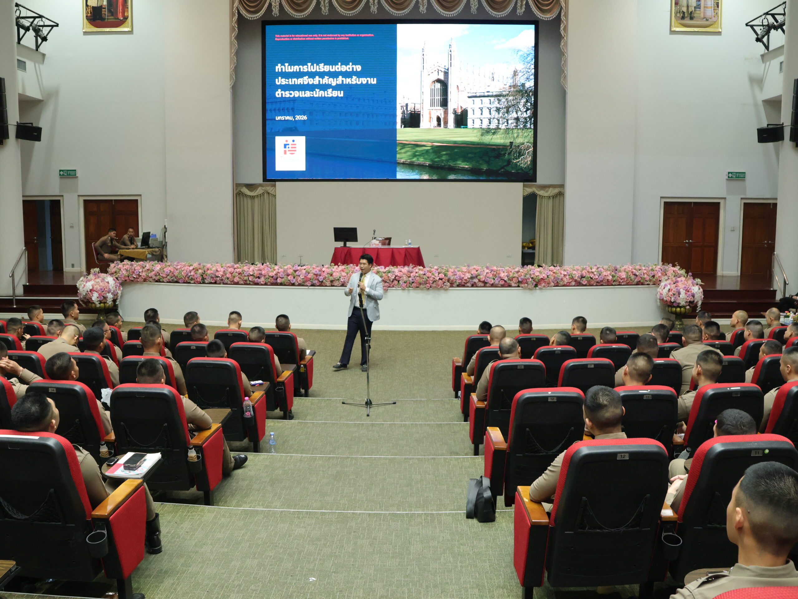 คุณทาศิพัฒน์ วงศ์วิทยกำจร บรรยายในหัวข้อทำไมการไปเรียนต่างประเทศจึงสำคัญสำหรับการเป็นตำรวจ